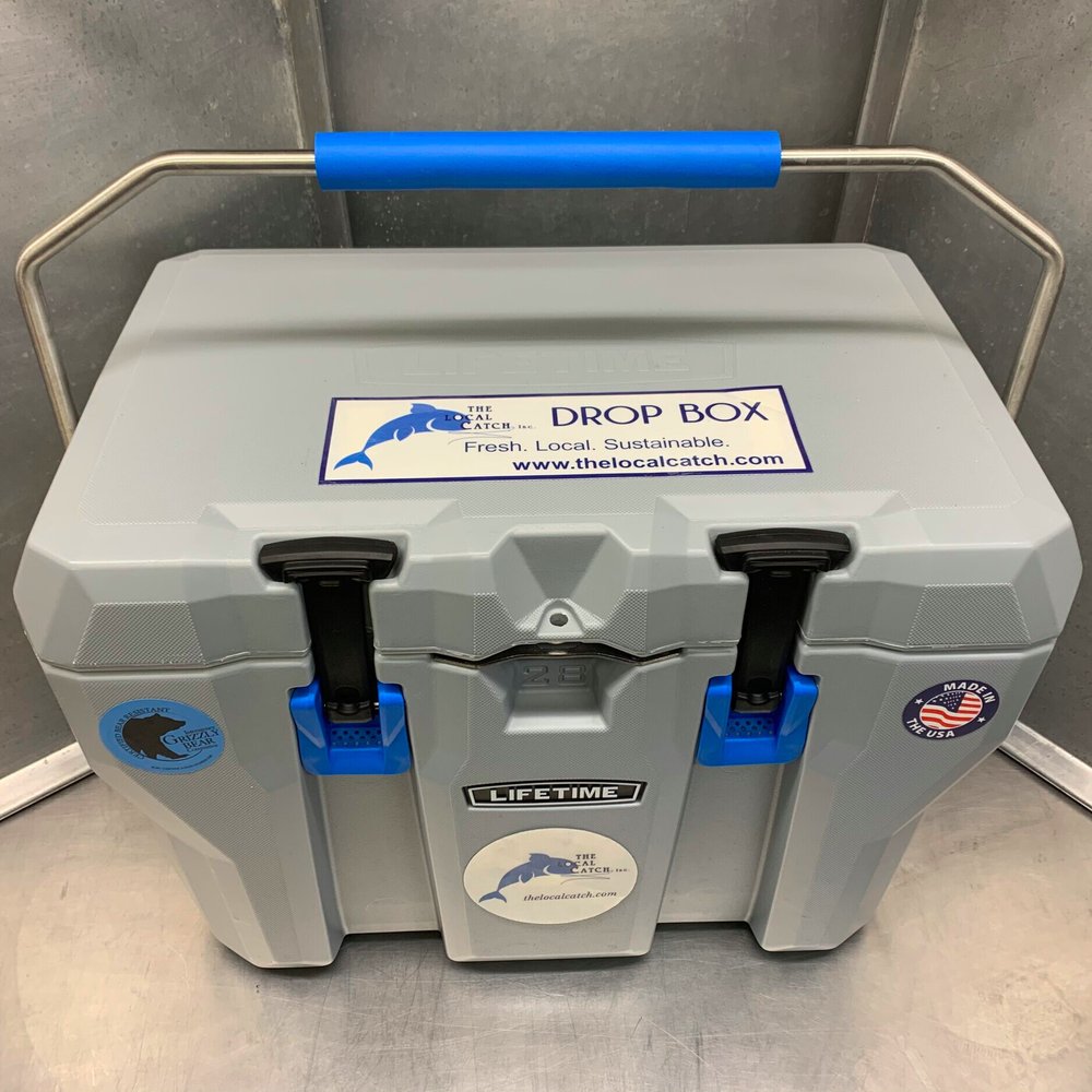 Help us reduce our carbon “fin print.” Get your own Local Catch drop box and eliminate the need for styrofoam and gel packs.